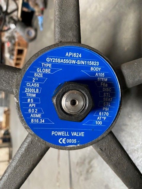 2" POWELL GY25SA55GW 2500# SW A105 Y-PATTERN GLOBE VALVE, TRIM 5, GRAPHITE PACKING
